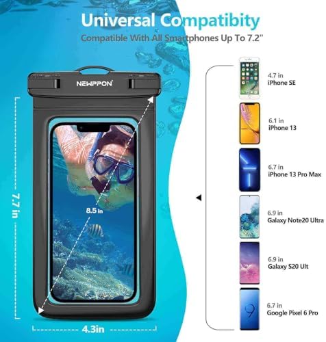 Fits Smartphones up to 7.2 Inch – Large size float waterproof phone case transparent cover – Compatible with Apple iPhones 16 15 14 13 12 11 Pro Max Plus Mini SE Xs XR promax & Samsung Galaxy FE S24 S23 S22 S21+ S21 S20+ S21 S20 S10 S10E Note Edge Mate A71 A51 A21 A20 G7 & Android Goole Pixel 6 5 4 3 Pro 5A 4A 3A 5G 4Xl XL LG K92 Q52 K62 K52 K71 Stylo 6 Velvet V60 ThinQ Q51 K51 K41S K61 K31 K50 K40 & ZTE HTC Oneplus Xiaomi Asus Fire Phone Sony Moto Alcatel Lenovo Nokia Acer Microsoft etc.