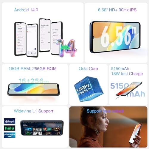 DOOGEE N55P Pro 6.56″ HD Android 14 Unlocked Cell Phone with 16GB RAM 256GB ROM
