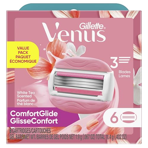 Gillette Venus ComfortGlide White Tea Women’s Razor Blades, 3-Blade Razor Refills, 6 Count