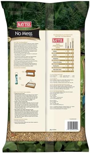 Kaytee No Mess Blend is a premium mix of hulled sunflower seeds, shelled peanuts, added calcium for bird health, and other appetizing ingredients sure to attract a variety of birds to your backyard all year long. With the outer shells removed from the seeds and nuts, this mix is 100% edible and won’t leave messy leftovers under feeders. It’s effortless eating for them and effortless caretaking for you.