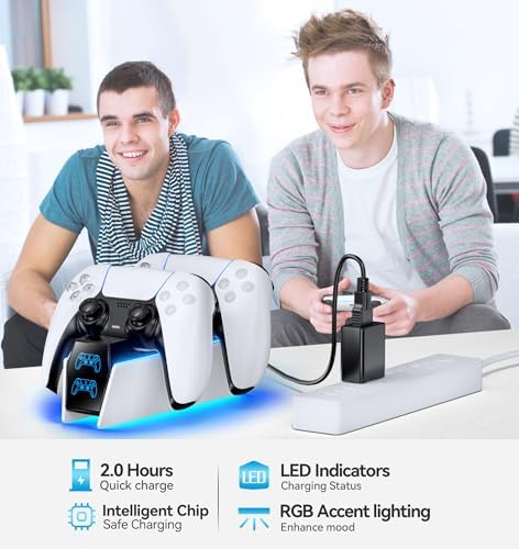 Fits PS5 & PS5 Edge Controllers:This PS5 controller charger station is specially designed to connect with a designated AC power adapter and charge dual PS5 controllers at the same time. It is a must-have PS5 accessory for PS5 controller. Keeping you in games longer with the Playstation 5 console, this PS5 Accessories Kits is the best replacement for the official OEM PS5 Dualsense wireless controller charging station.