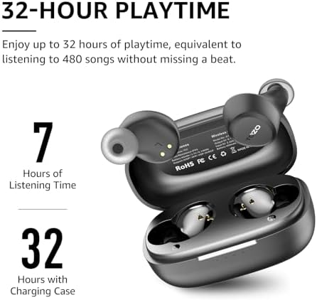 [Long Battery Life] With headphone 40mAh capacity and charging bin 400mAh capacity. The earbuds lasts 7 hours for normal use, and the charging bin after fully charged via USB A to USB C charging cable, which can enjoy extending 32 hours of playtime, equivalent to listening to 480 songs without missing a beat.