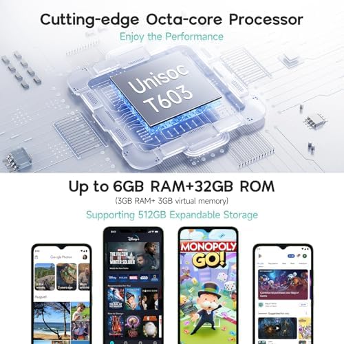 🎁【6GB + 32GB 512GB Expansible】: The powerful Unisoc T603 chipset makes Note 19 is fast and efficient. Packed with 6GB RAM (3GB + 3GB Virtual Memory) + 32GB ROM Storage and expandable to 512GB. ⚡Please turn on the virtual memory in the settings if you need.
