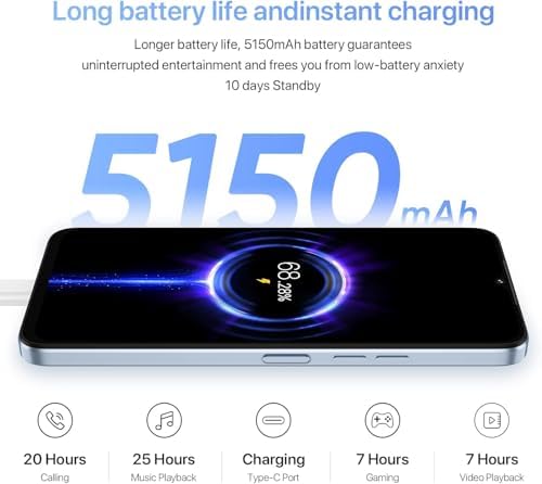 50MP Ultra-Clear Camera phones : Umidigi G3 MAX android smartphone equipped features dual 50MP AI rear camera that captures ultra-clear and detailed photos and videos. The phone also includes an 8MP front-facing camera that takes high-quality selfies and supports video calls.