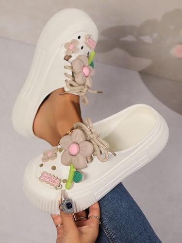 Women’s Platform Slide Sandals with Bow and Flower Charms, Cavernous Upper